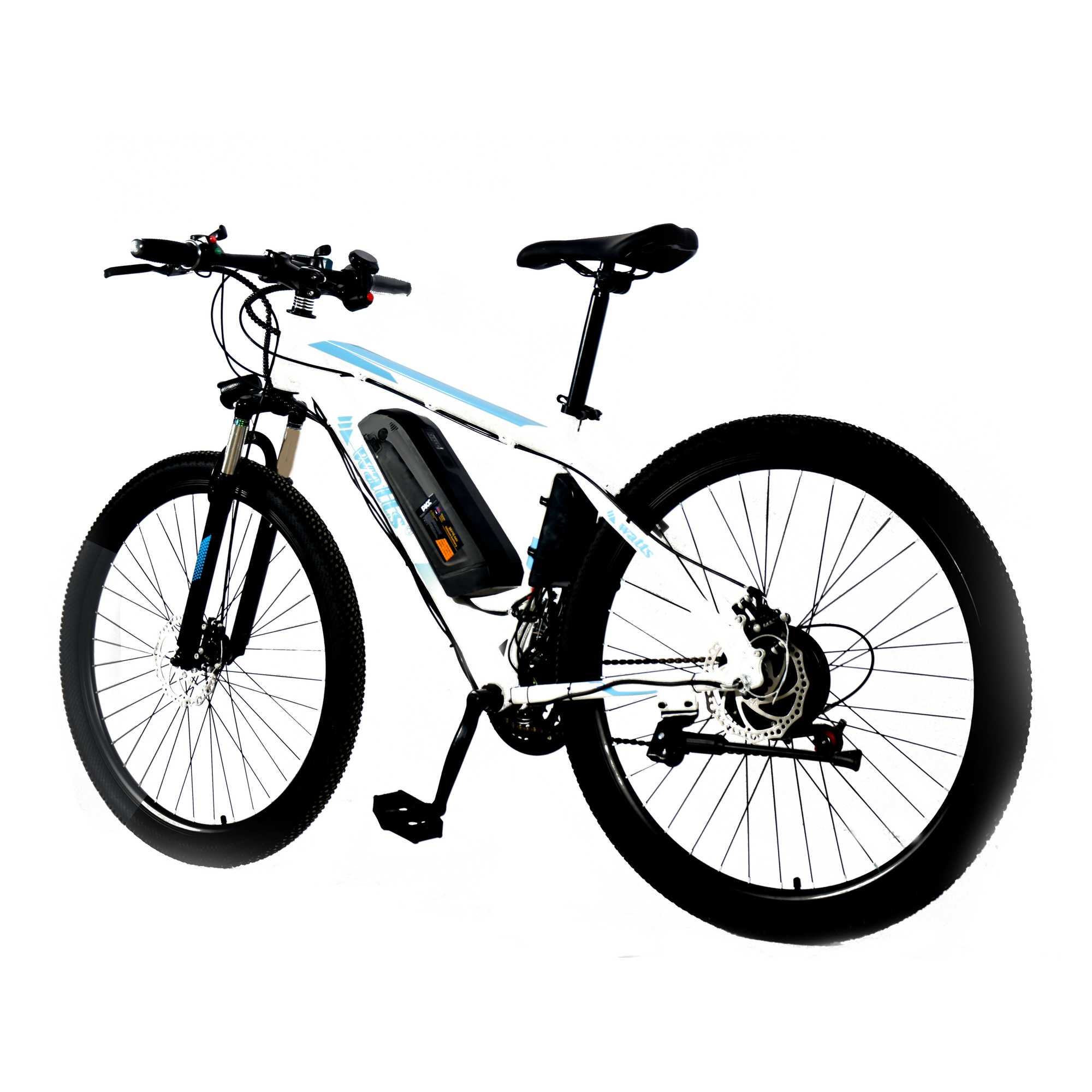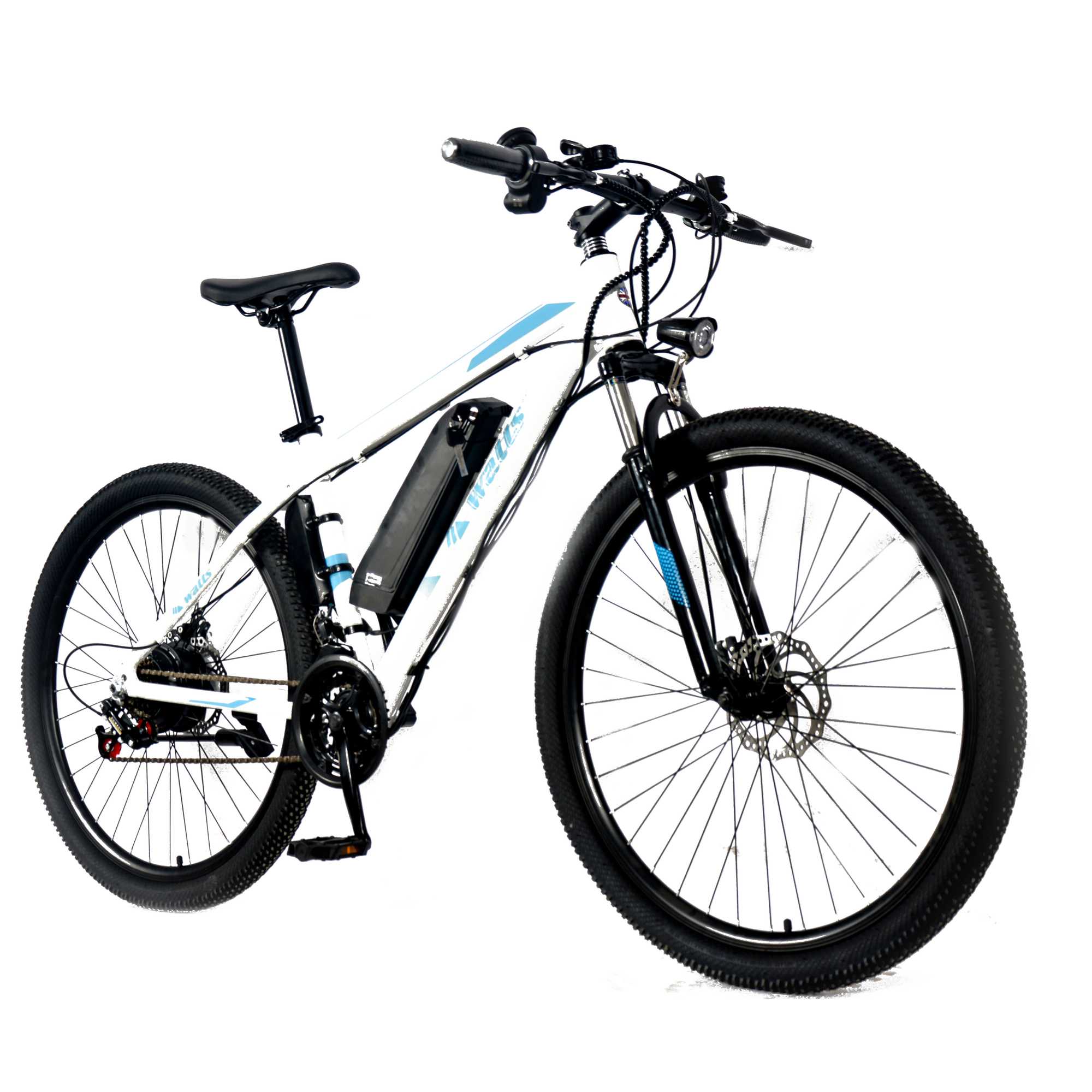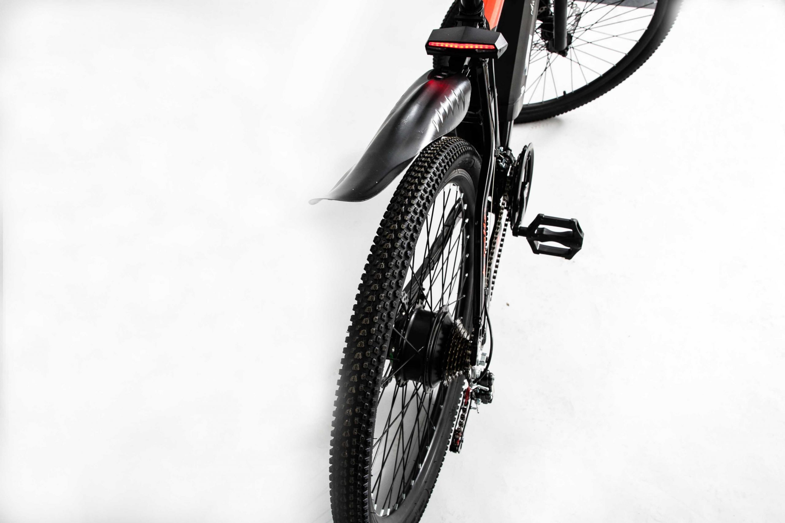 The lightweight aluminium framed E Mountain Bike offers a choice of four trim colours: